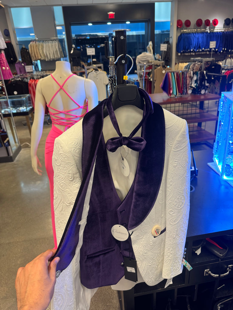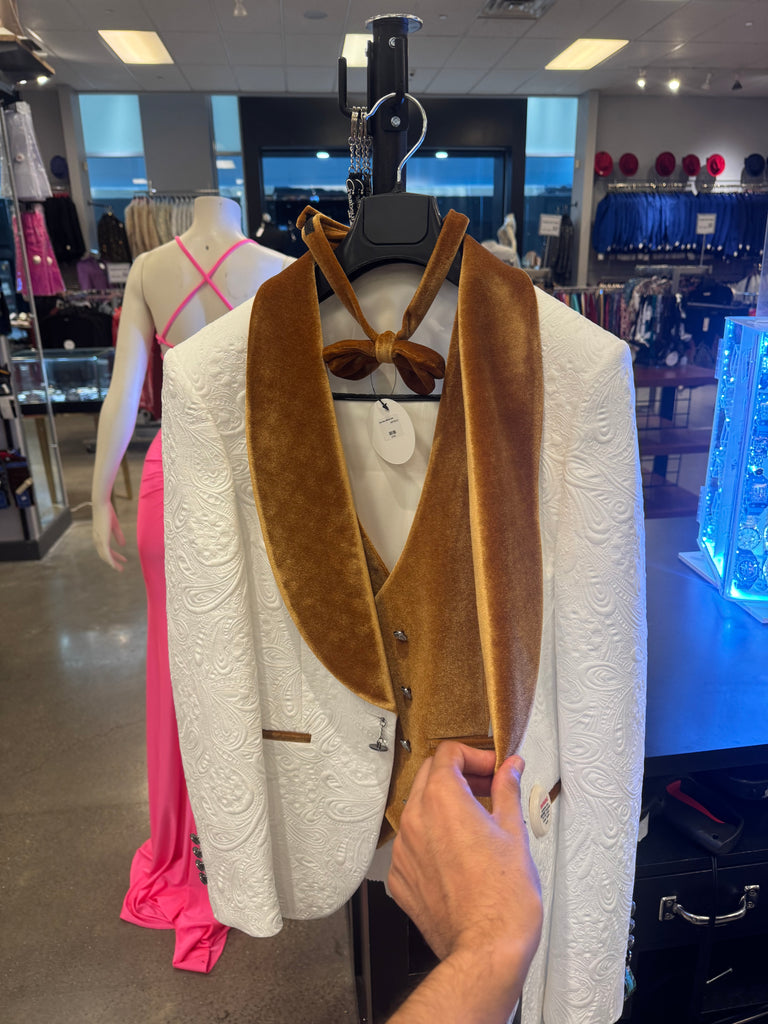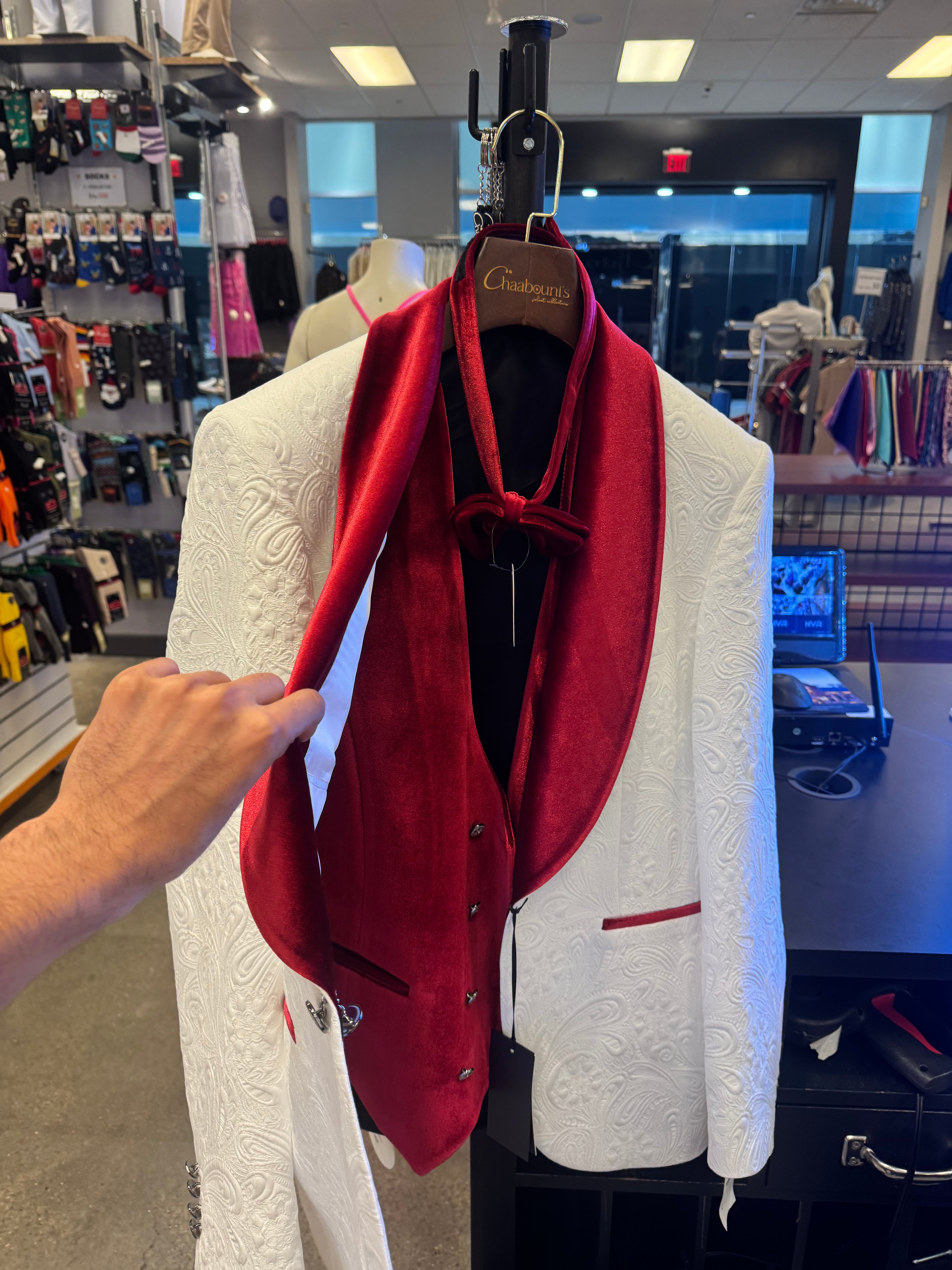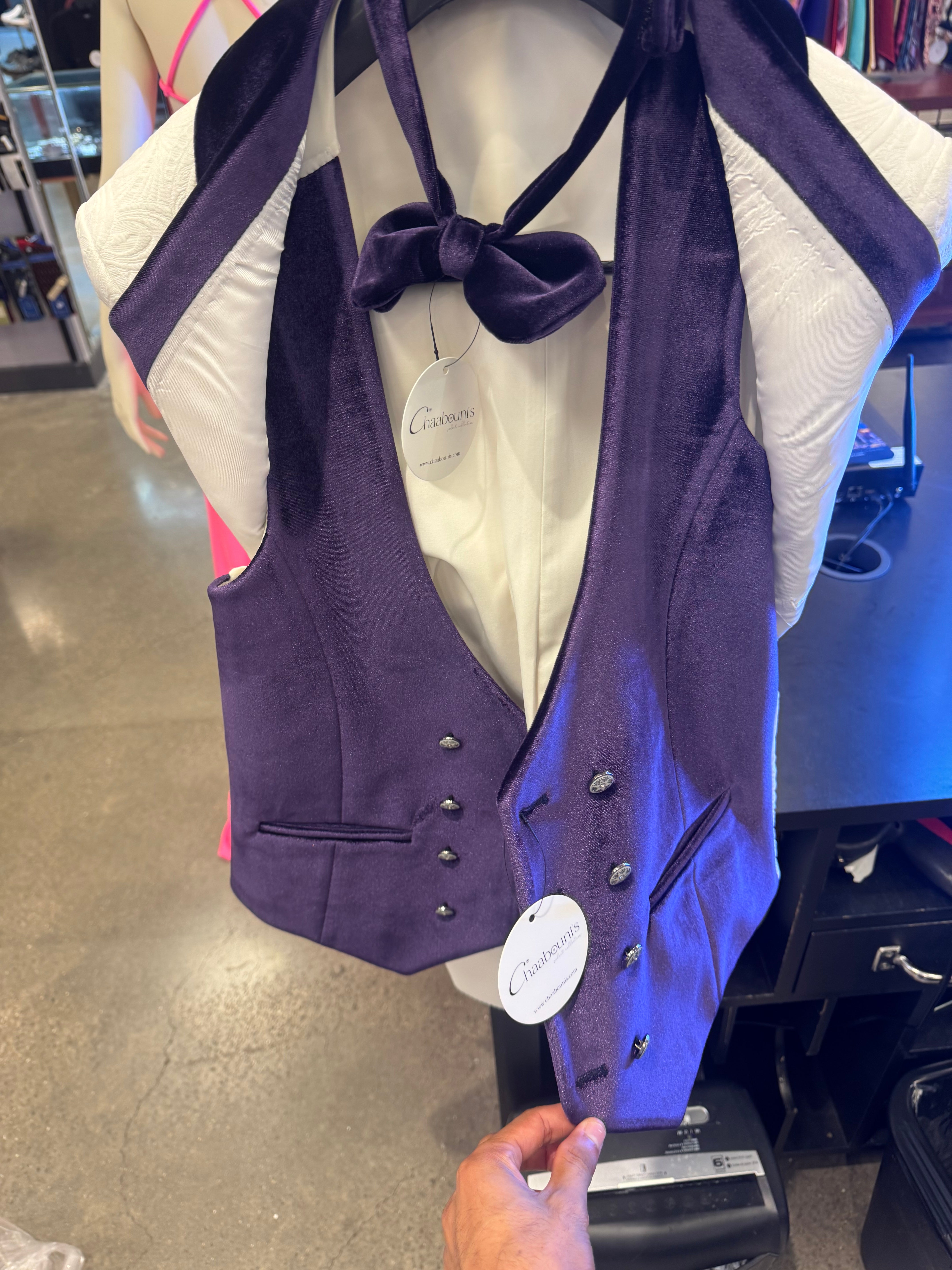 4-piece tuxedo suit; Jacket, Vest, Pants & Bowtie.